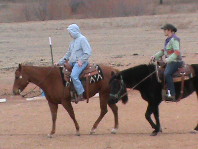 My son-in-law on his first time ride and being around horses, coached by my daughter.