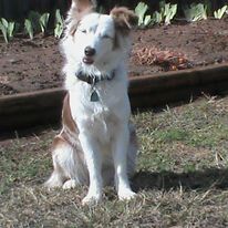 “I’m not Jack.” pointing to the dog, “That is Jack.” And he told me his name. “Jack is the sire of the puppies over there. ” He whistled and Jack jumped off the truck. A large red merle Australian shepherd trotted over and sat down on my foot looking up to me as if I was supposed to give him something.