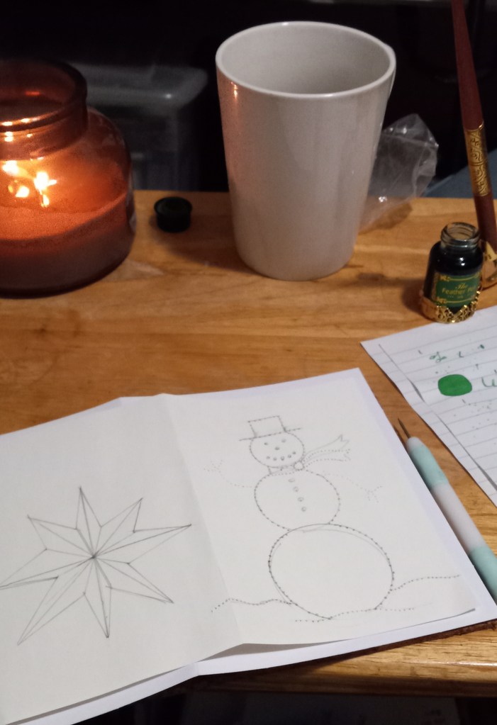 This year I had big ambitions of creating Victorian style Christmas cards to send instead of purchasing cards. I was able to create ten cards for family and friends. I punched holes in lines to form an outline of the object being created. During Victorian times, this was an inexpensive method used by the lower classes to send Christmas cards.