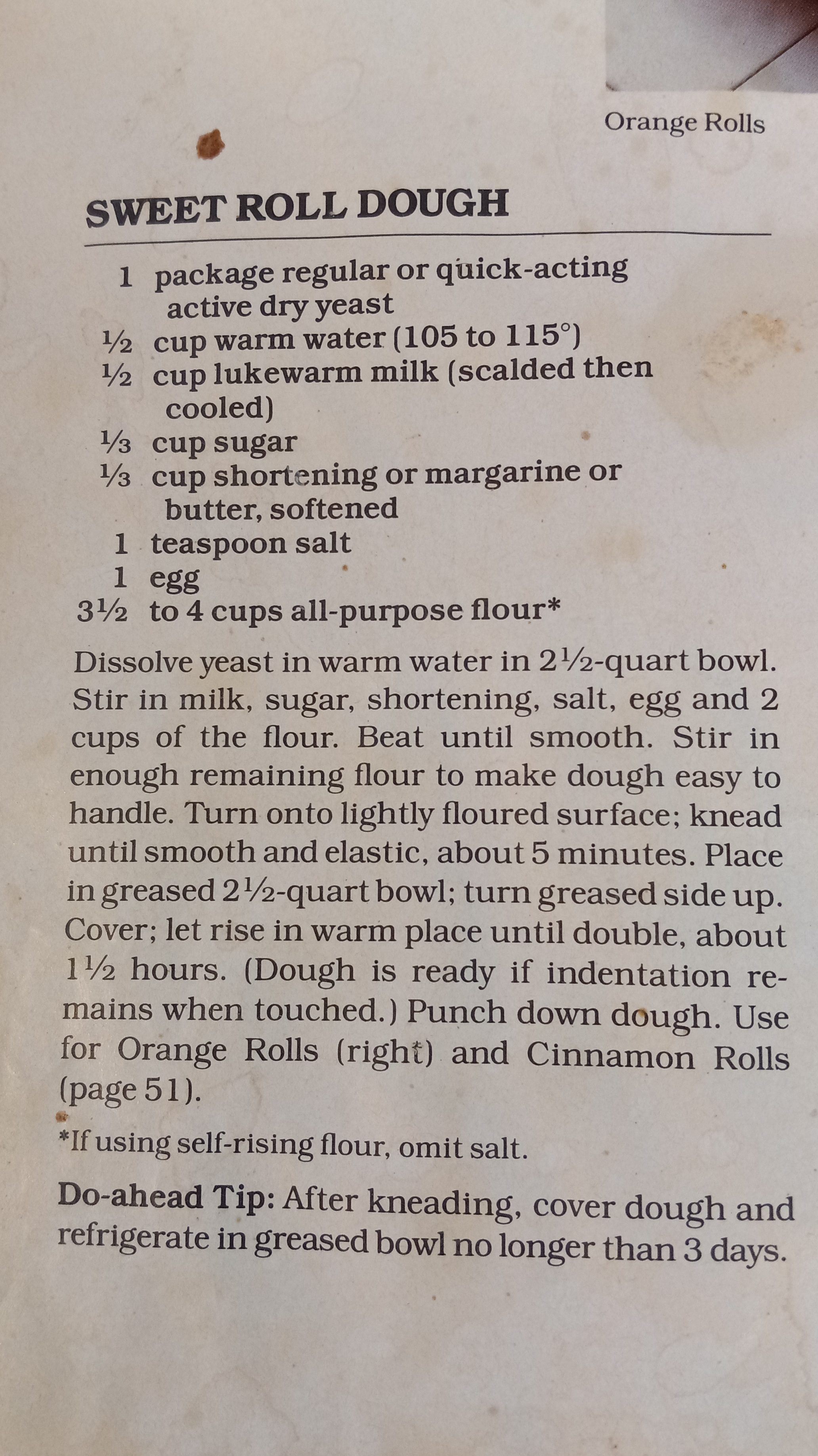 My recipe for the sweet dough comes straight out of Betty Crocker Cookbook. The recipe gives the options of shortening, margarine or butter – I always use butter. I make the rest of the recipe as written.